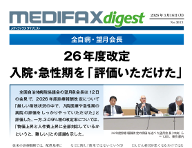 - 26年度改定、入院・急性期を「評価いただけた」 全自病・望月会長